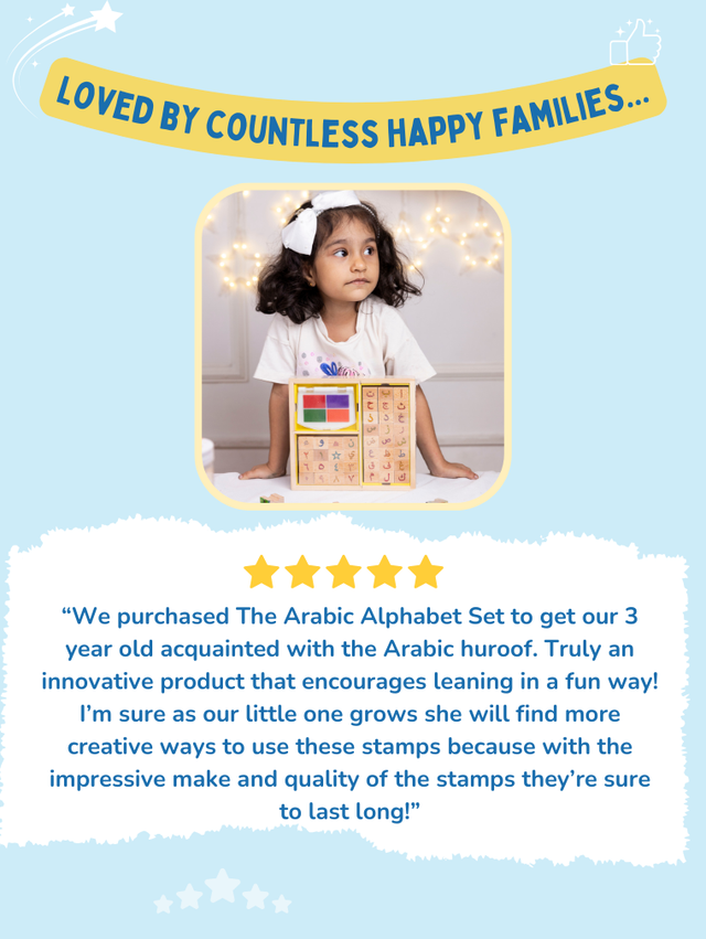 Arabic Wooden Stamp Set - Educational & Creative Arabic Alphabet Stamps with Ink Pad